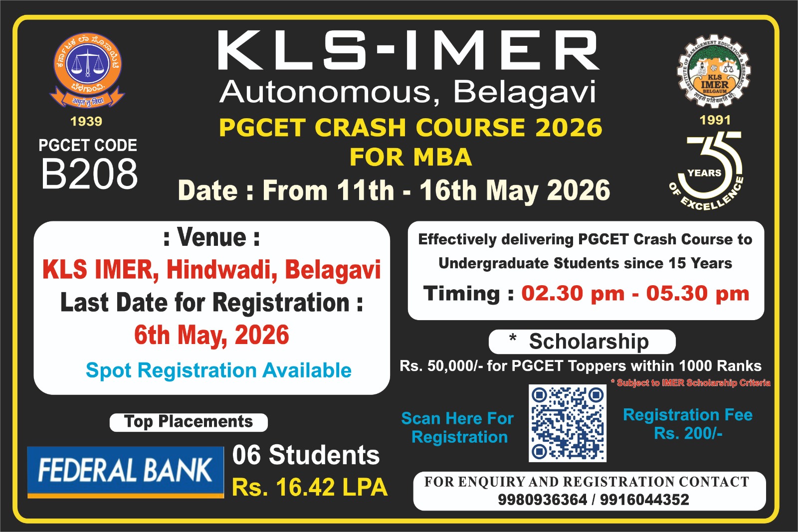 KLS IMER, Belagavi (Autonomous), is organizing a PGCET Crash Course 2026 for MBA aspirants aimed at enhancing exam readiness through expert guidance.