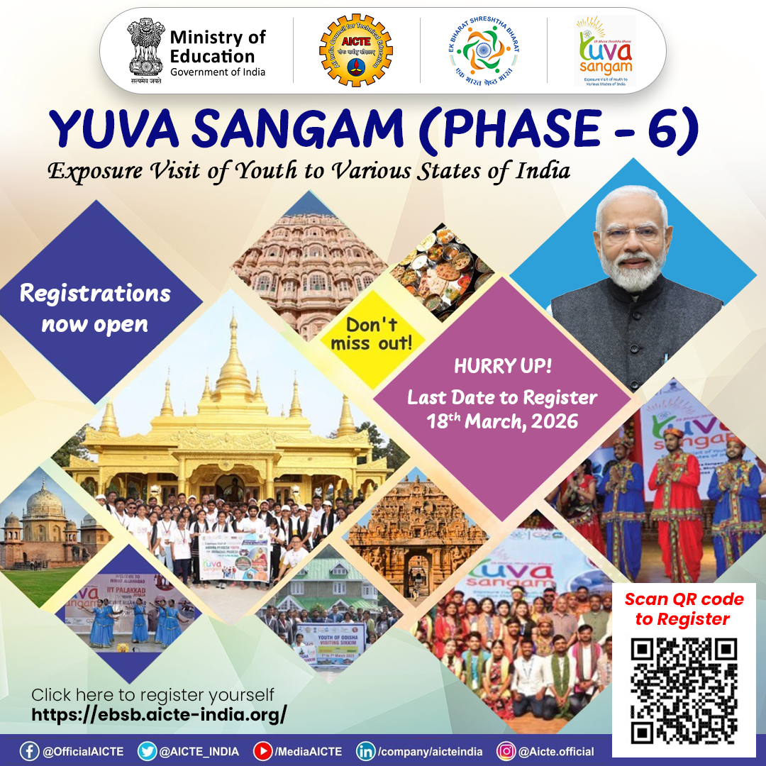 The Ministry of Education has launched Phase-VI of the Yuva Sangam, which is part of the Ek Bharat Shreshtha Bharat (EBSB) program. It is designed to promote national integration and cultural exchange among youth aged 18โ€“30 through short educational tours across different states of India. ๐Ÿ‡ฎ๐Ÿ‡ณโœจ